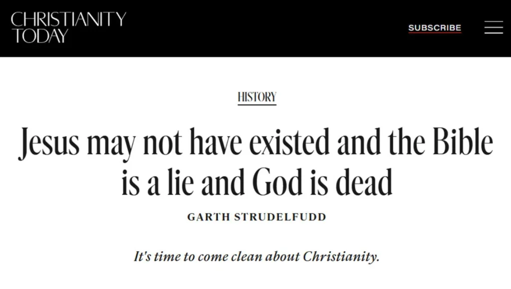 CAROL STREAM, IL — An article published by Christianity Today calls into question the existence of Jesus, argues that the Bible is a lie, and says God is dead.
